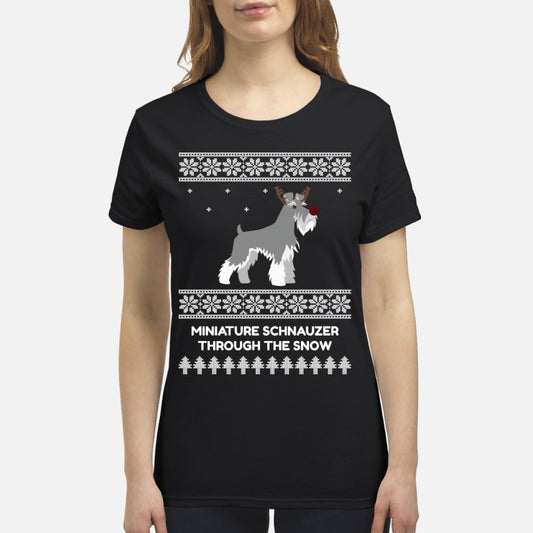 Miniature Schnauzer Through The Snow - Premium Women's T-shirt